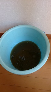 洗い流した水は真っ黒に汚れていました。