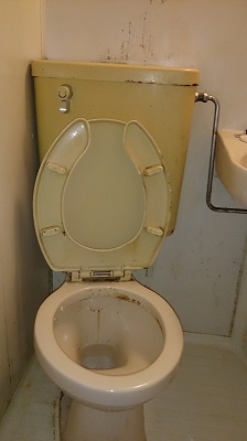 トイレはカビや尿石で汚れていました。