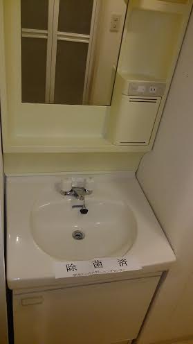 棚の中を拭き上げ,最後に除菌仕上げを行います。